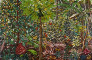 Garden West (2018) is one of Alennott’s most significant large-scale works — acrylic on canvas, 200 x 150 cm. A luminous landscape carrying the artist’s recurring meditation on the garden as threshold — where East and West dissolve into pure colour and life.